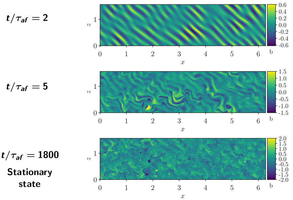 Dissipation dominated by vertical gradient $\Rightarrow$ not yet "geophysical" regime
