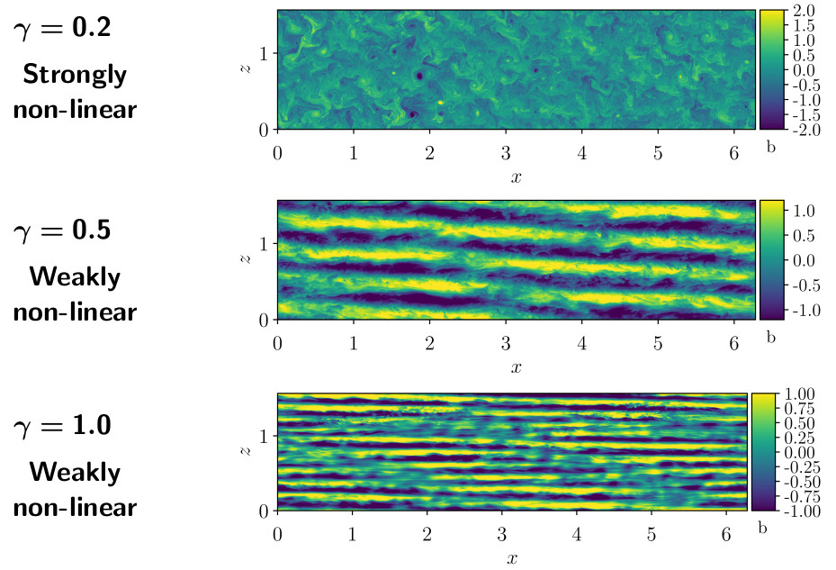$\gamma = 1$ (strongly stratified), $n_x = 3840$
