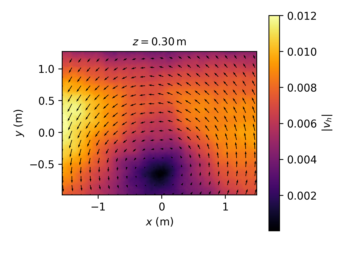 $\Rightarrow F_h \simeq 6.5 \times 10^{{-4}}$ (strongly stratified) and $\R = Re {F_h}^2 \simeq 0.5$ (viscosity affected regime)