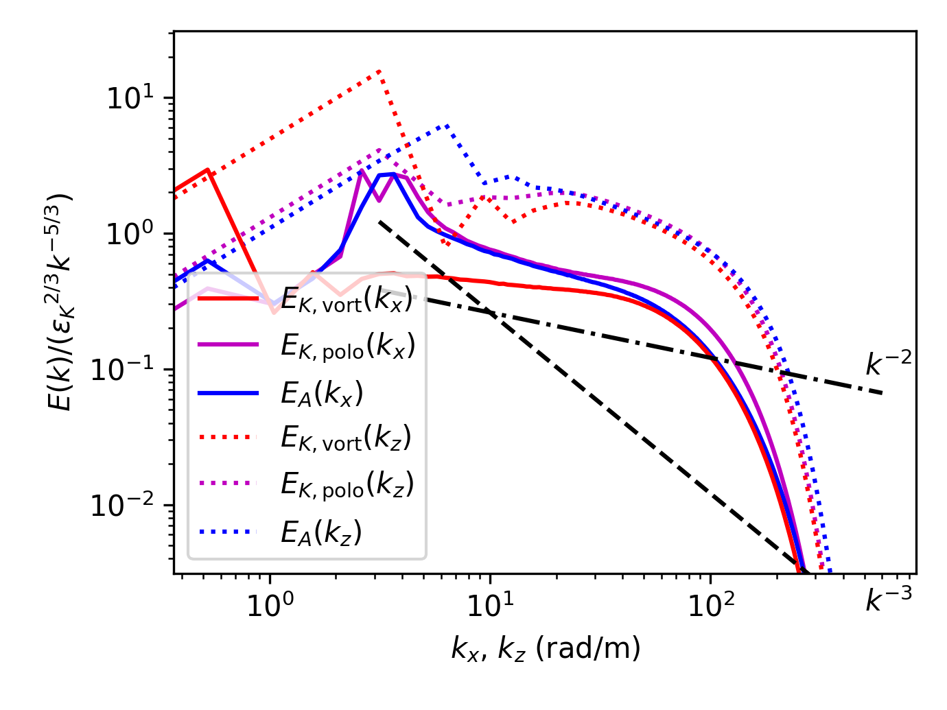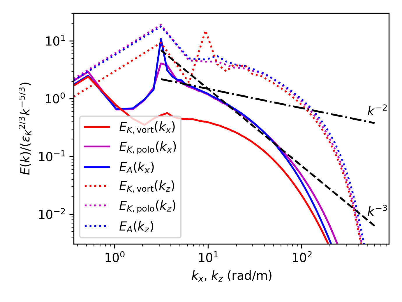 Very strongly anisotropic spectra ("strongly stratified", $F_h \ll 10^{-2}$)